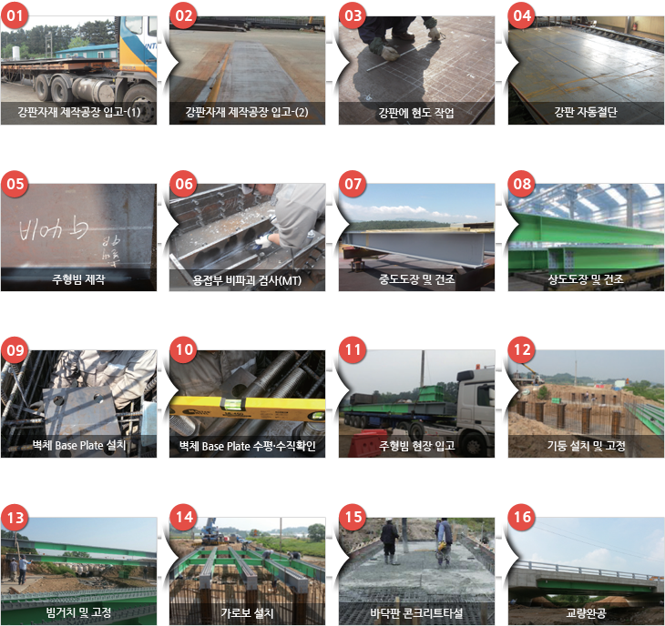 리트 구조로 일체화함으로 구조적 안전성 매우 우수 - 거더무게가 가벼워서 거치시 소형장비 사용으로 현장 적용성 유리