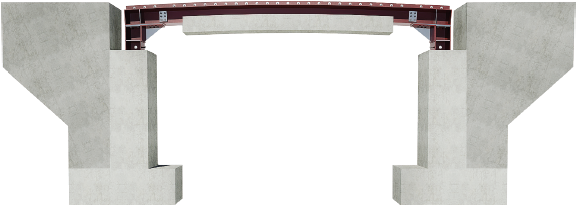 Presel (Preflex Self Weight Composite) 거더는 제작틀에 강재거더를 거치한 후 케이싱 콘크리트를