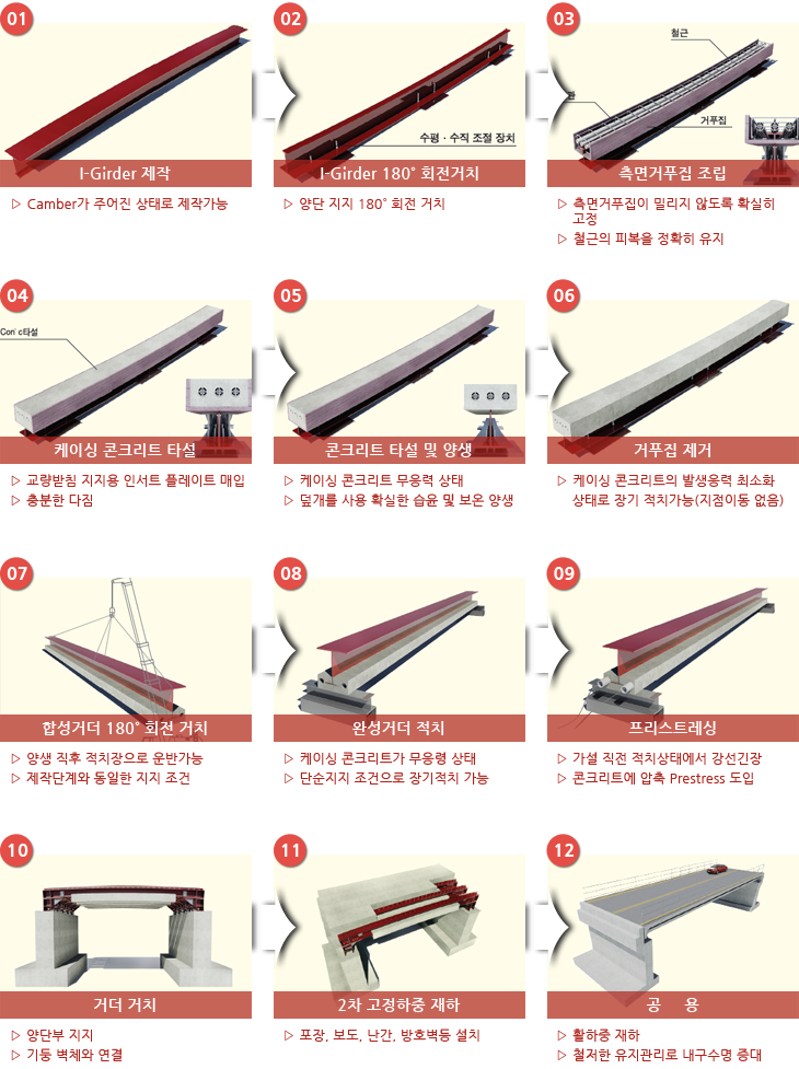 - 강재거더의 공장제작으로 시공품질 확보 및 공사기간 단축